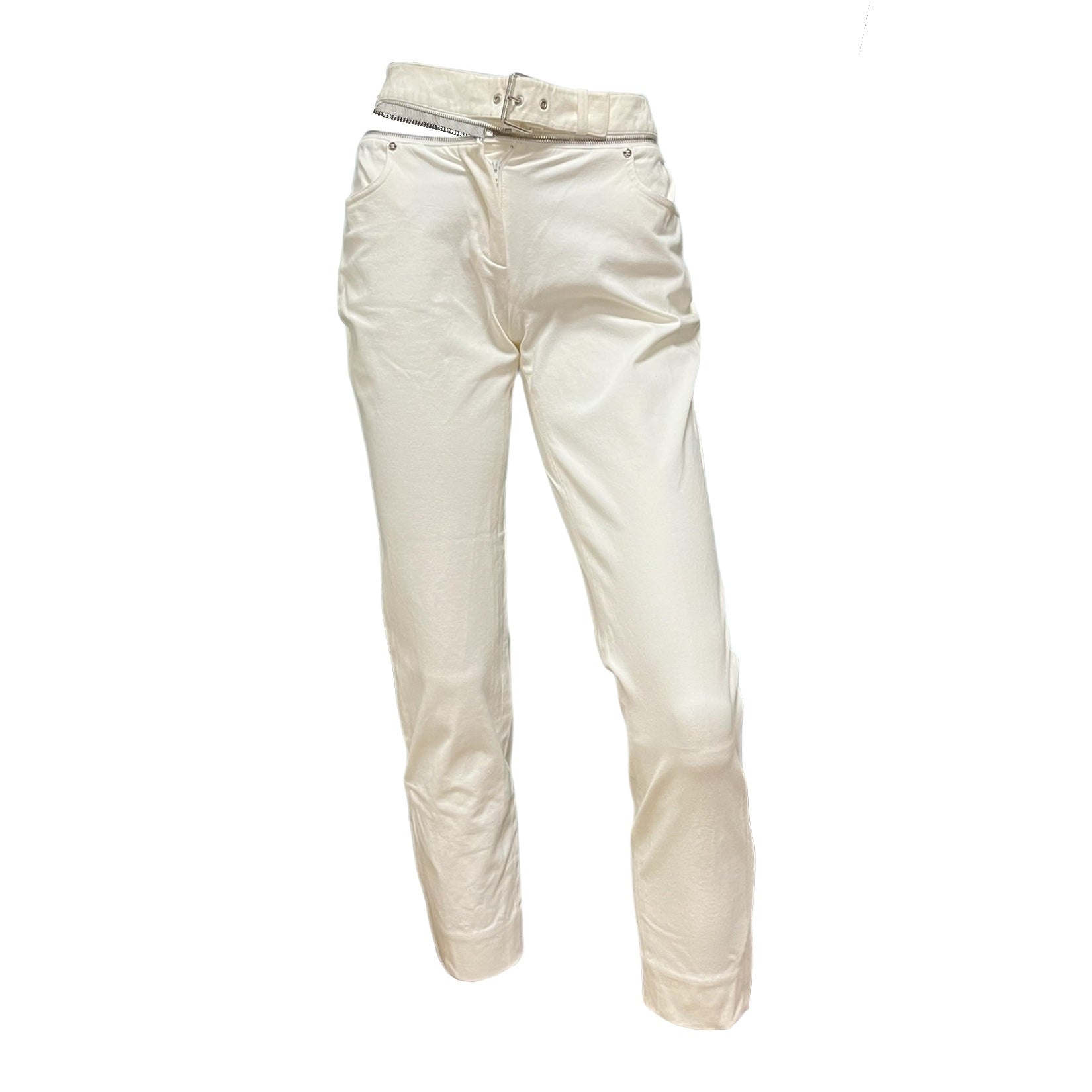 condition 9/10 color white size 36 waist 34cm, length 87cm, hips 44cm, front rise 23cm, inseam 65cm by flat cotton 94% elastane 6% made in france £246.87 €282.54 A$419.53 free shipping worldwide (takes around 5days)