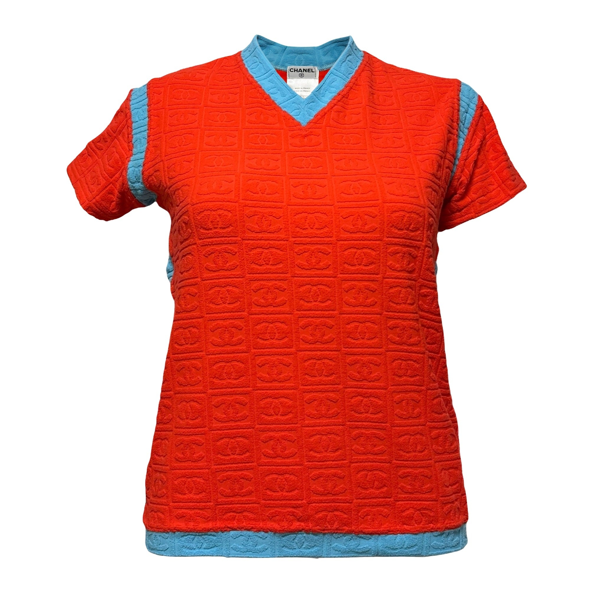CHANEL Sport Spring Summer 2002 CC Emboss Jacquard Terry Cloth T-Shirt