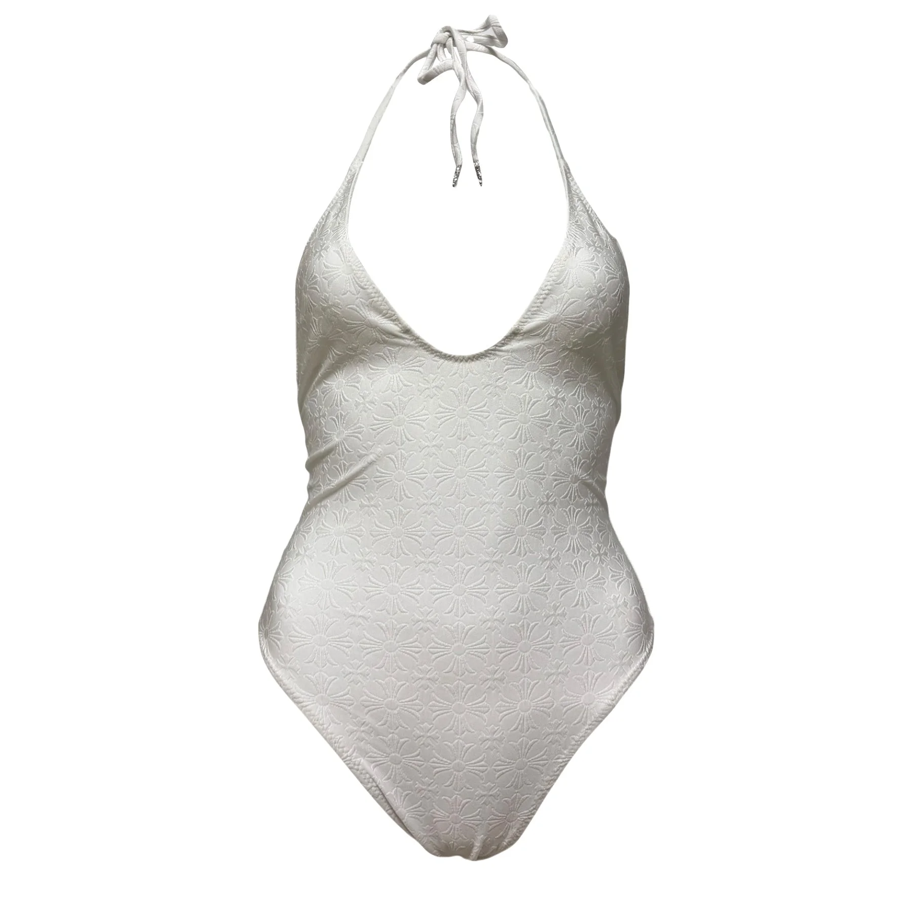 CHROME HEARTS "Dipped in Blue” Embossed Cross Halterneck One-Piece Swimsuit