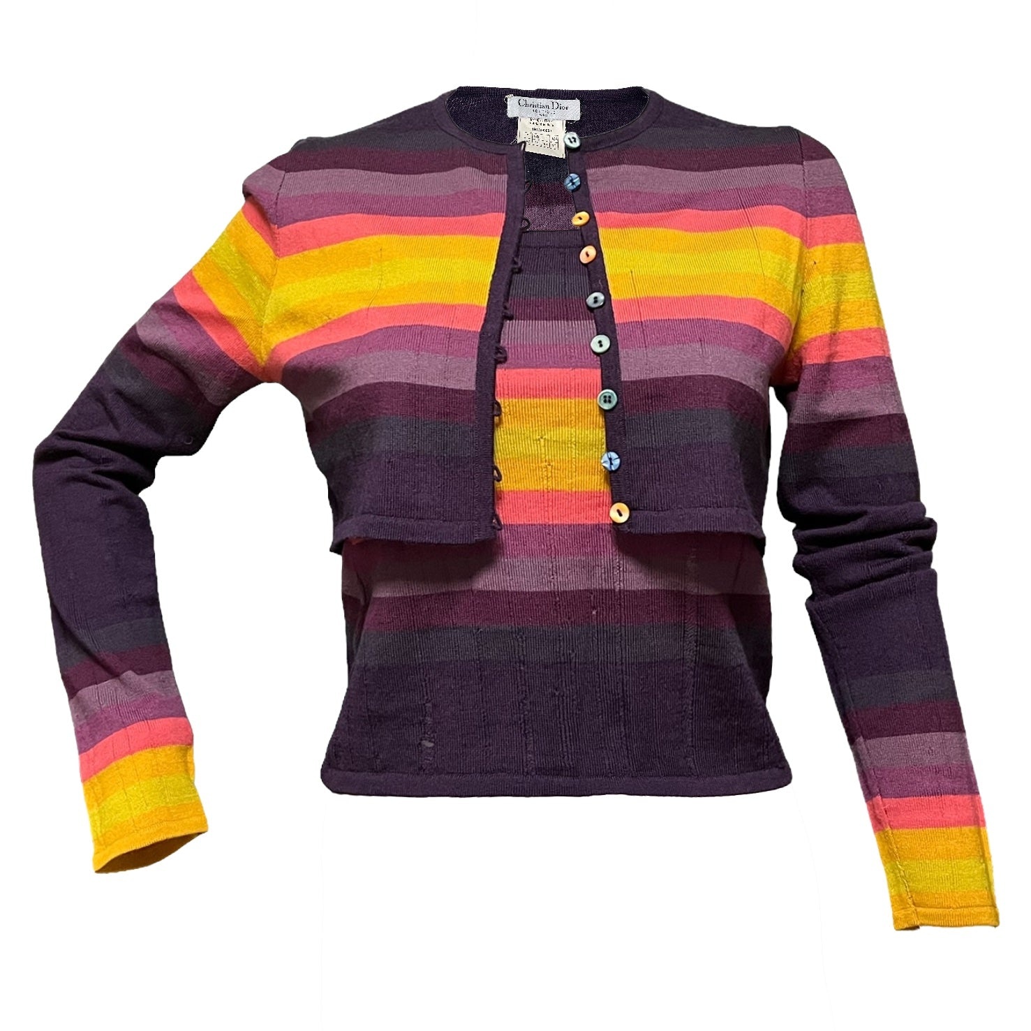 CHRISTIAN DIOR Fall Winter 2001 Striped Print Knit Cropped Cardigan and Bustier Top Set
