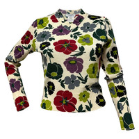 CHRISTIAN DIOR Fall Winter 2001 V-neck Floral Print Knit Sweater