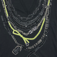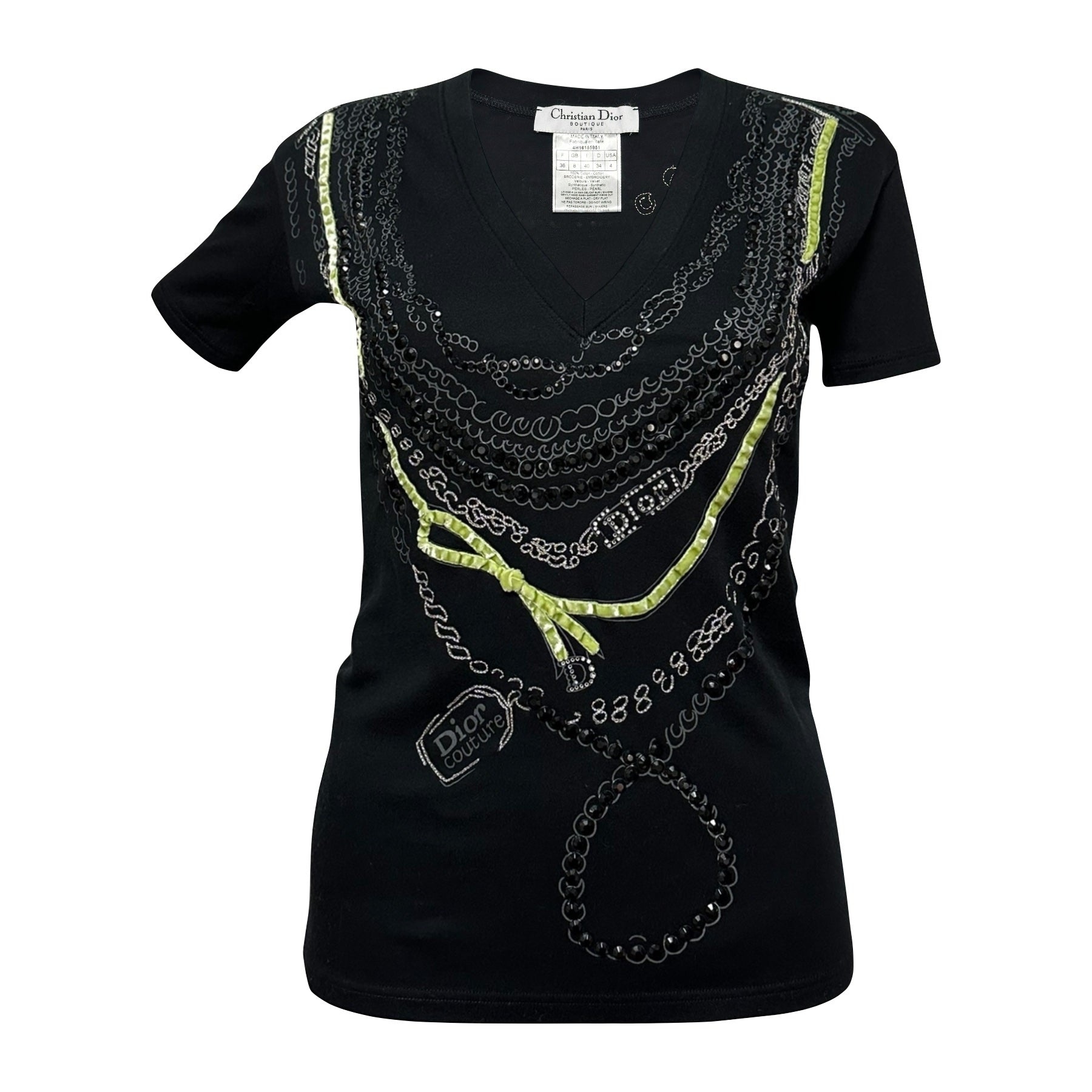 CHRISTIAN DIOR Fall Winter 2004 Couture Embellished Necklace Detail V-neck T-Shirt