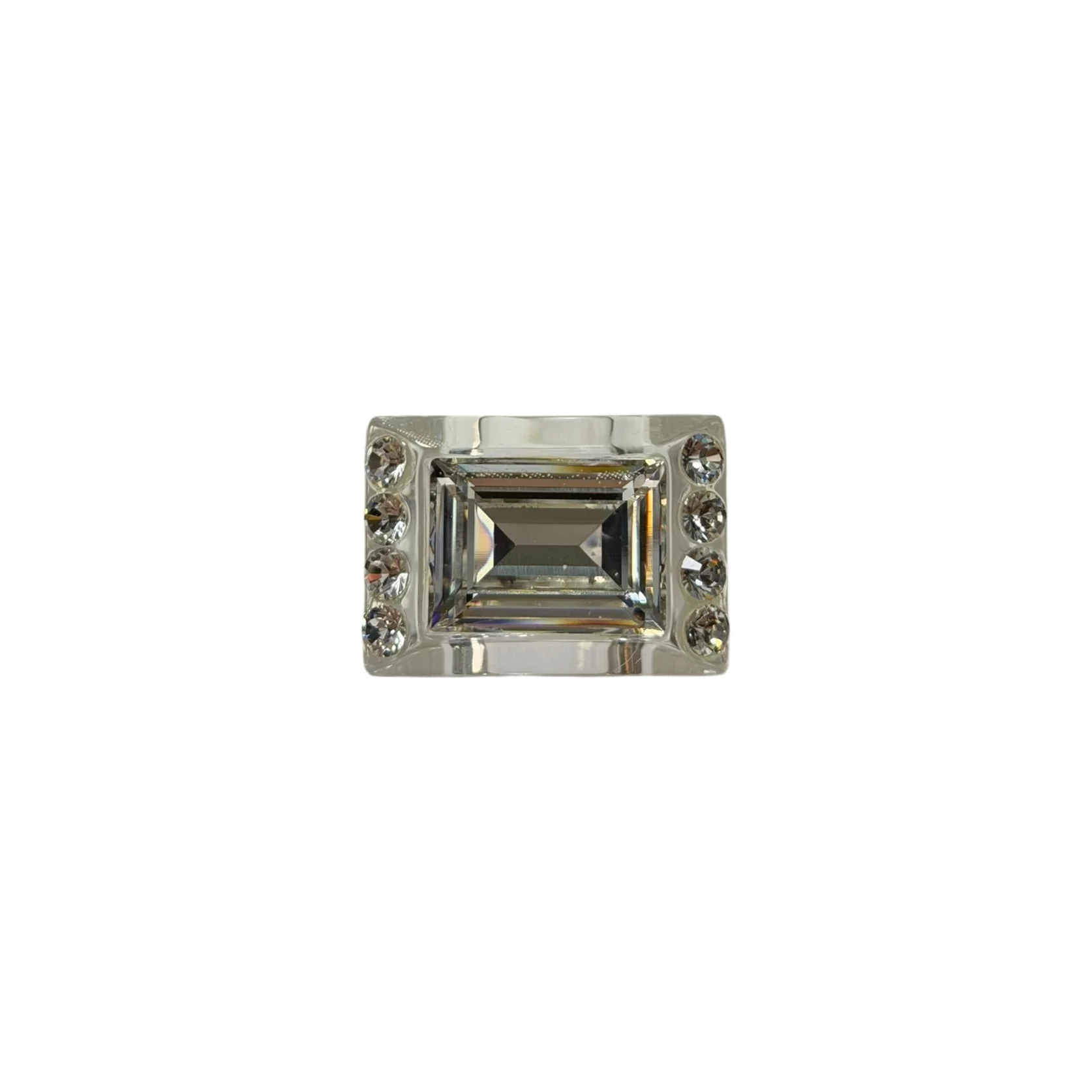 condition 9/10 color clear × silver size us 7 band width 2cm, ornament width 2.7cm, ornament length 2cm vintage condition with light scratches and slight signs of wear. free shipping worldwide (takes around 5days)