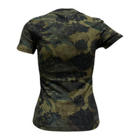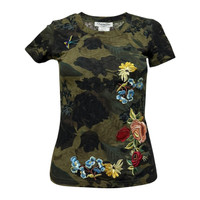 CHRISTIAN DIOR Spring Summer 2005 Camouflage Print Floral Embroidered T-Shirt with Broach