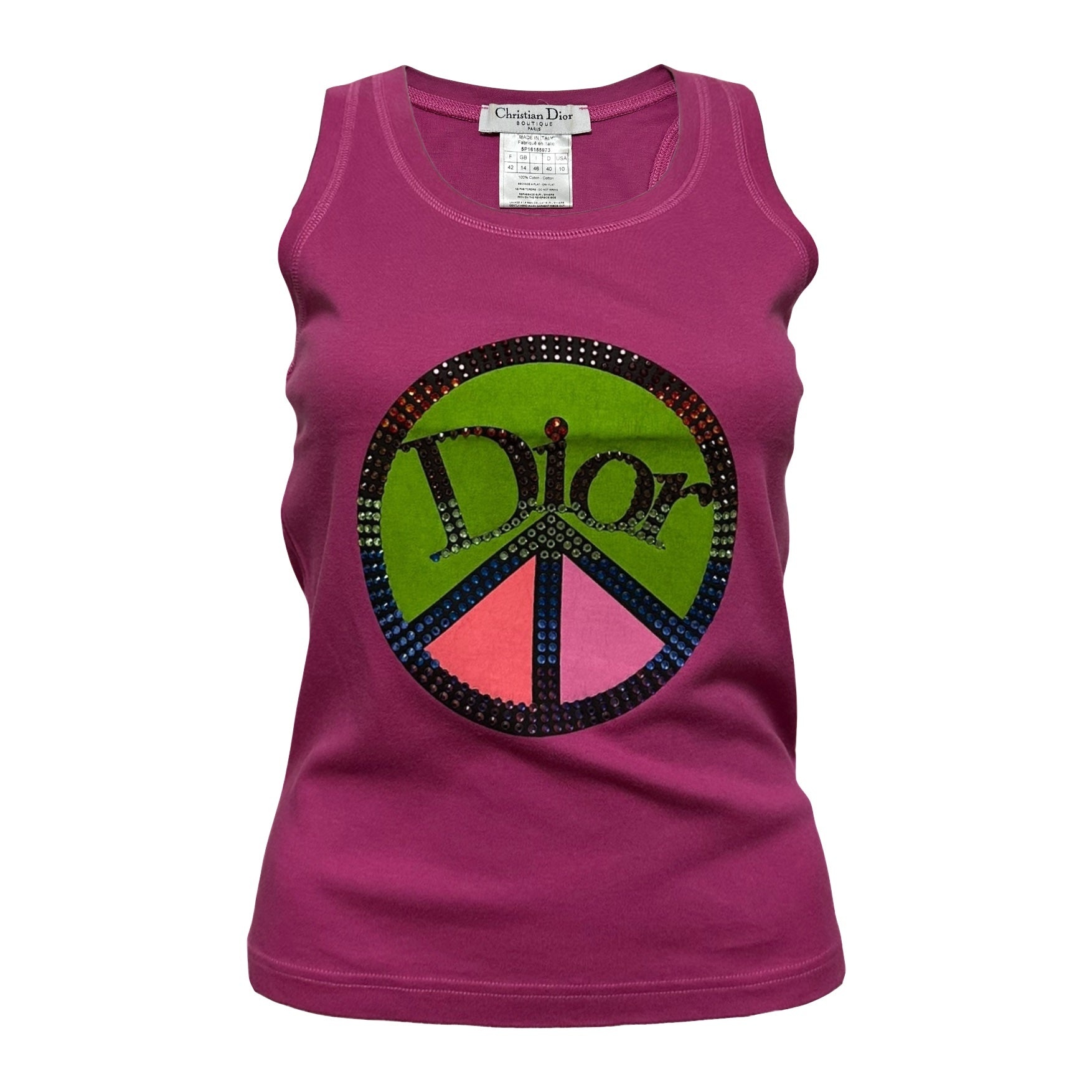CHRISTIAN DIOR Spring Summer 2005 Peace and Love Sign Swarovski Dior Logo Tank Top