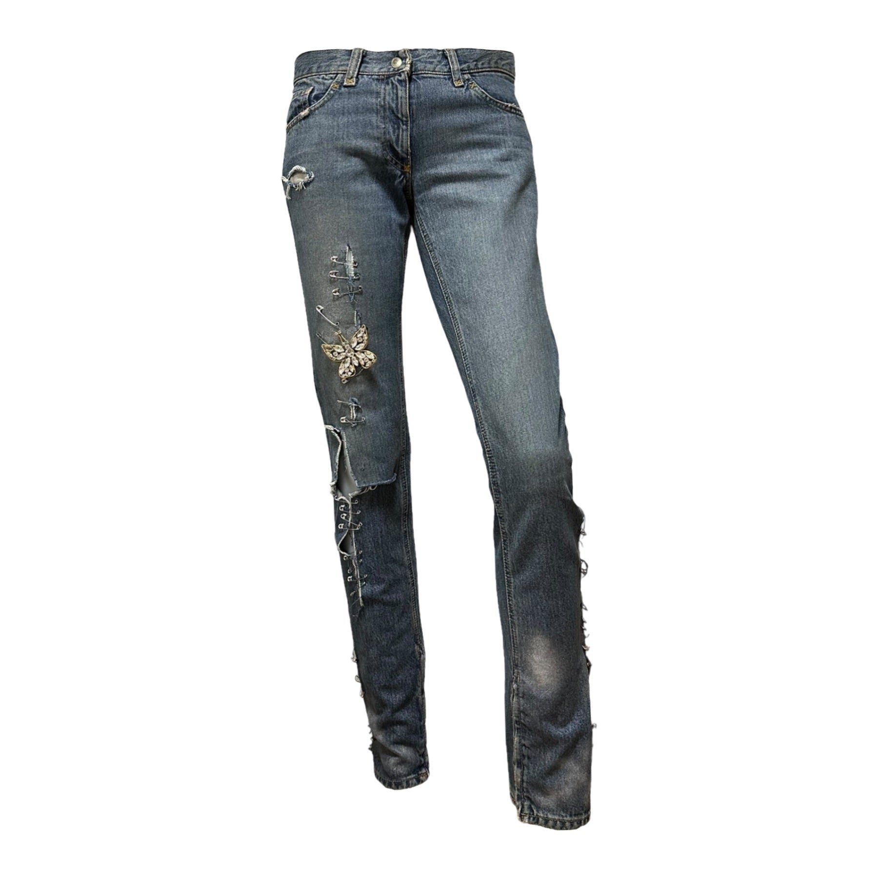 DOLCE&GABBANA Spring Summer 2001 Safety Pin Denim Pants