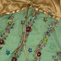 condition 9/10 color pistachio green × gold size 24/38 chest 40cm, under-bust 33cm, length 95cm, waist 37cm, hips 46cm by flat a rare vintage piece with exquisite hand-beaded detailing. While the overall condition remains very good, slight imperfections such as loose threads or missing beads may occur due to the delicacy of the work. silk 100% made in India serial number TR74B9 82013 free shipping worldwide (takes around 5days)
