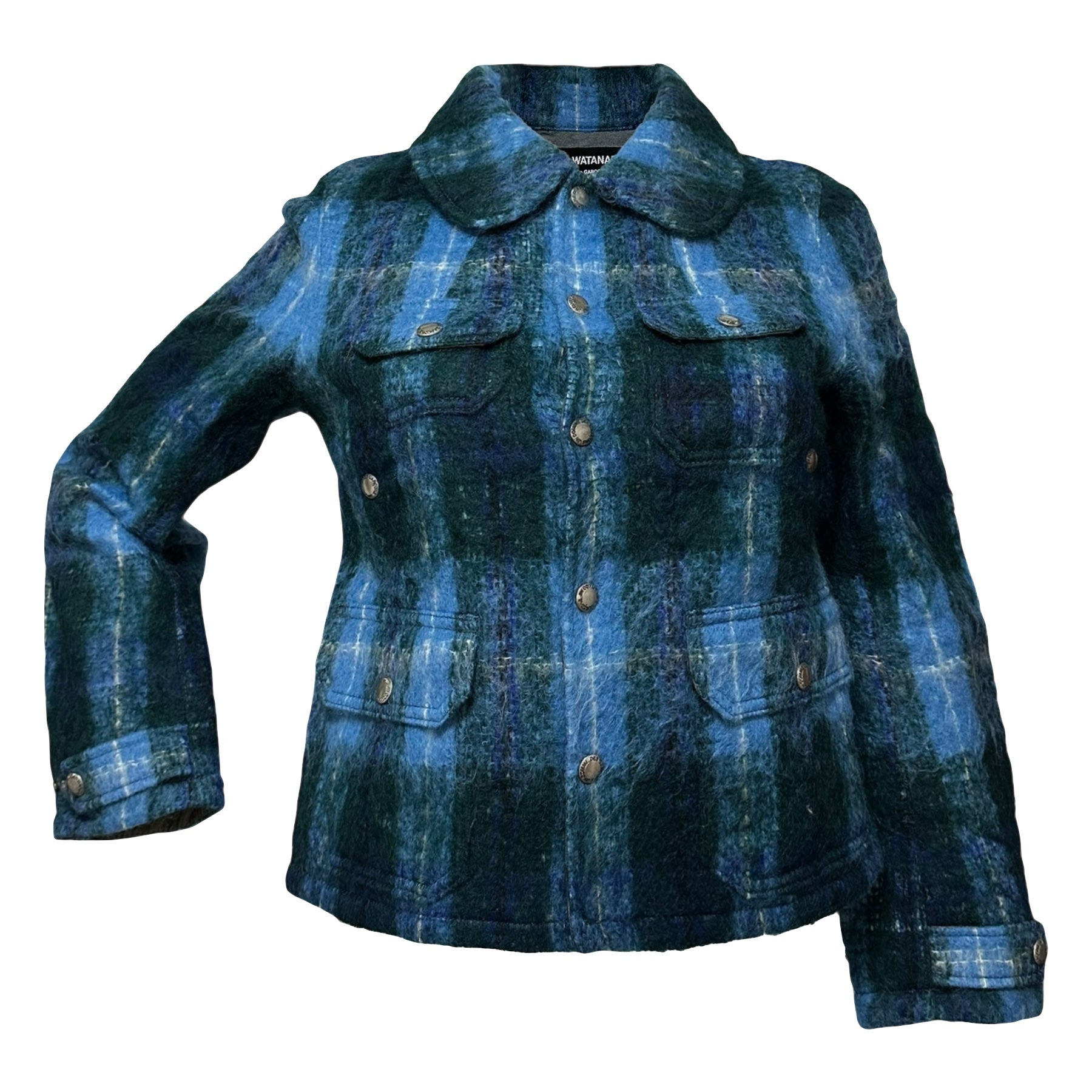 condition 9/10 color blue size m chest 43cm, length 59cm, sleeves 56cm, shoulder 38cm waist 46cm by flat six outer button pockets wool 59% mohair 26% nylon 15% made in japan £374.76 €438.99 A$702.13 free shipping worldwide (takes around 5days)