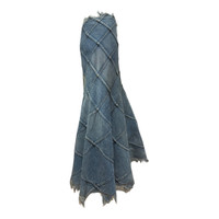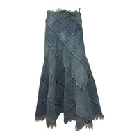 JUNYA WATANABE Spring Summer 2002 Patchwork Flared Denim Maxi Skirt with Frayed Hem