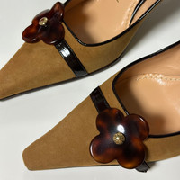 LOUIS VUITTON Tortoiseshell Flower Motif Suede Leather Slingback Sandals