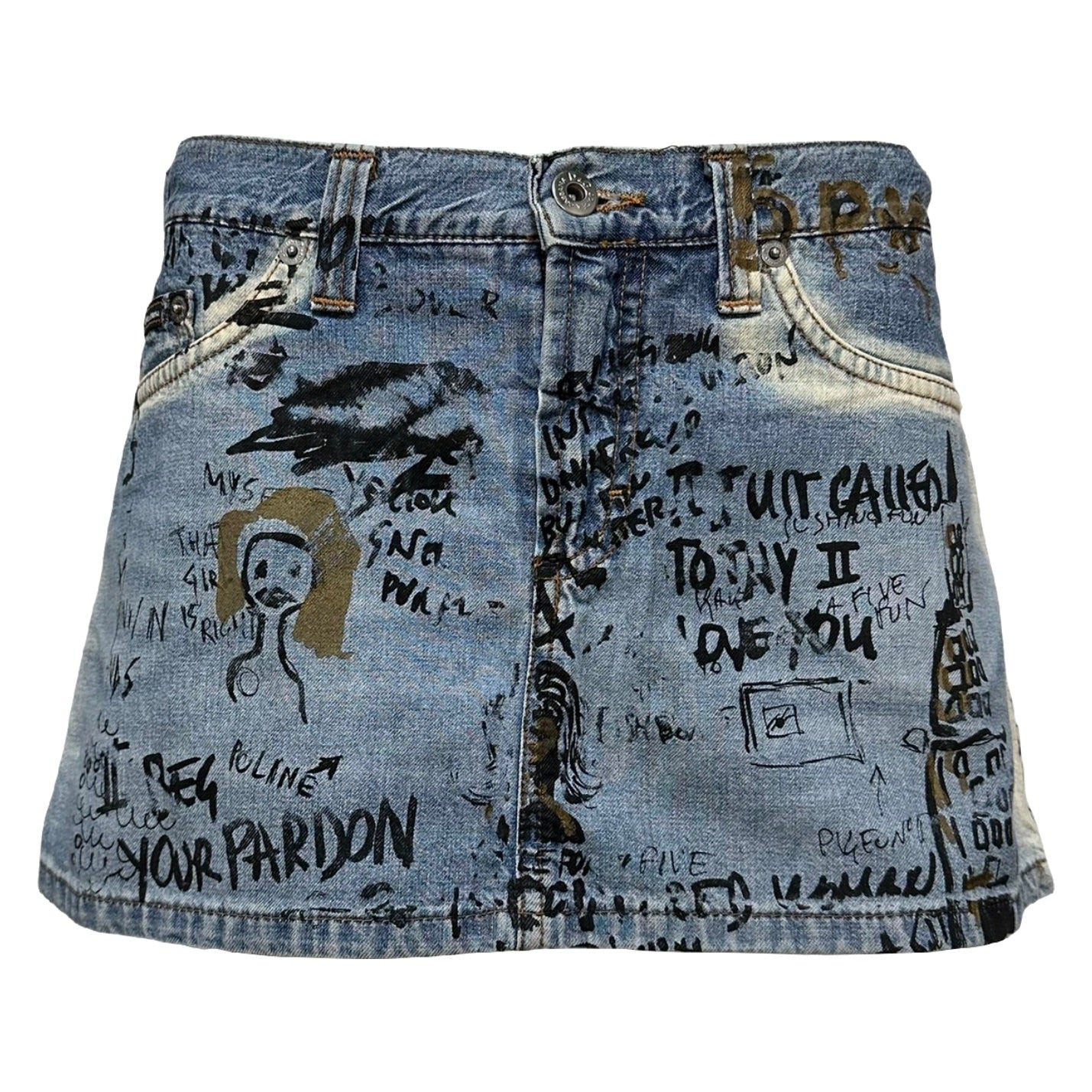 D&G Fall Winter 2000 Graffiti Print Denim Mini Skirt