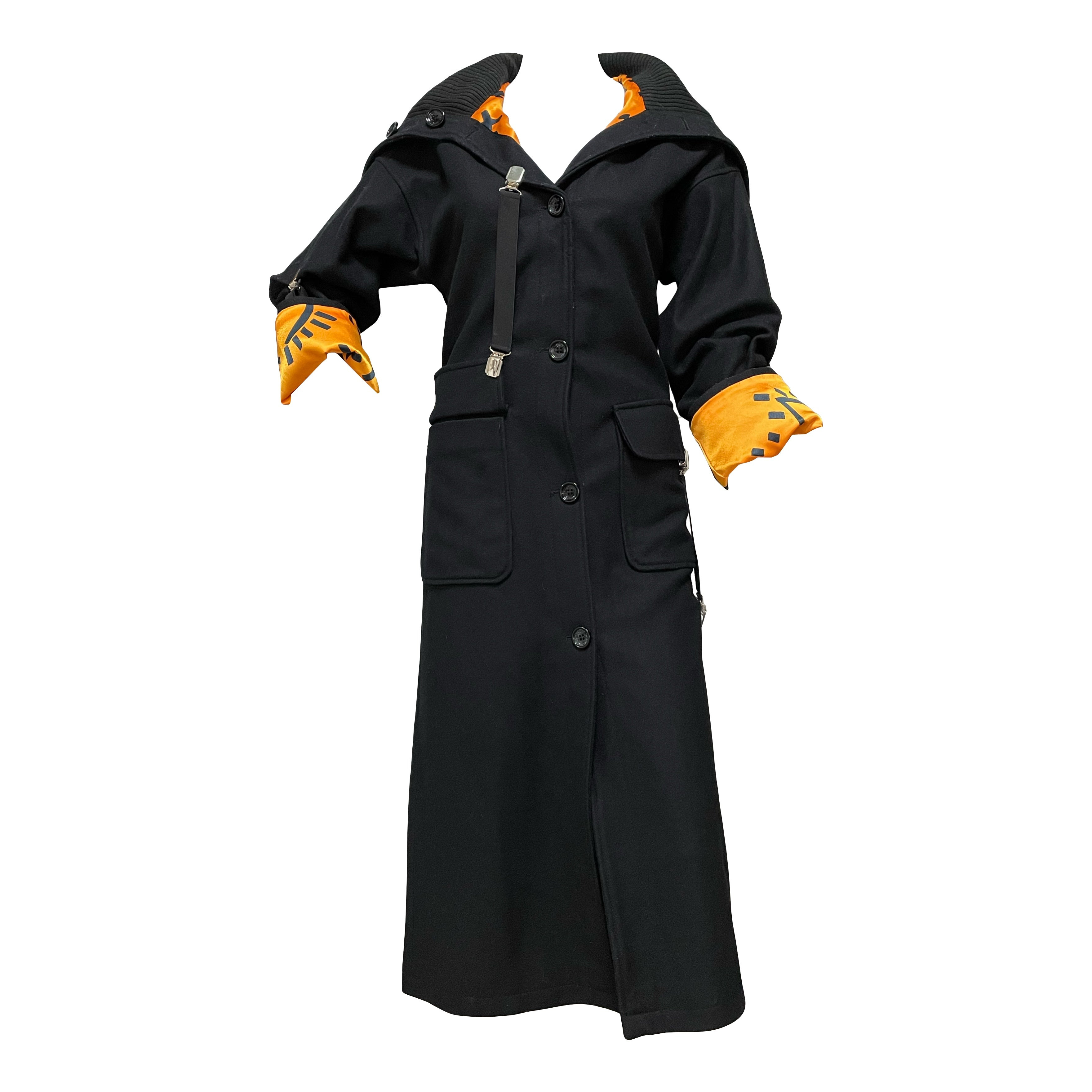 condition 8/10 color black × orange size 22/36 chest 46cm, waist 38cm, shoulder 52cm, sleeves 52cm, hips 46cm, length 110cm by flat wool 80% nylon 20% made in italy £642.36 €751.28 A$1,213.94 free shipping worldwide (takes around 5days)