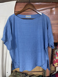 Welcome Please check photo for all detial Please check measurement for size Item: issey miyake blouse shirt Condition: good used Color blue Size m Made in japan