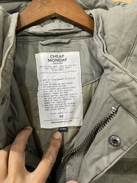 Welcome Please check photo for all detail Please check measurement for size Item: cheap monday fishtail parka jacket Condition : good used Color army green Size: xs SHIPPING 1) We ship to worldwide with a tracking number. - All item will ship from malaysia and will be ship by post Malaysia(Flexipack) - All items will be shipped out within 2-3 business days (handling time) after payment received. - Usually,it takes about 10 - 24 business days for delivery for all International order. 2) Add 5.00 USD for speedy delivery via DHL Express Service.It will take 4-7 Working days to deliver. More safe!! (PLEASE LEAVE ME CONTACT NUMBER, AS THE SHIPPING COMPANY ALWAYS NEED THE PHONE NUMBER TO HELP DELIVERING) PAYMENT - We accept payment with Paypal only.