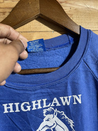 Welcome Please check photo for all detail Please check measurement for size Item: vintage 90s highlawn elementary school sweatshirt Condition: used/ defect / hole Size L Color blue Defect/distressed :hole at sweathirt refer photo Color blue Made in usa SHIPPING 1) We ship to worldwide with a tracking number. - All item will ship from malaysia and will be ship by post Malaysia(Flexipack) - All items will be shipped out within 2-3 business days (handling time) after payment received. - Usually,it takes about 10 - 24 business days for delivery for all International order. 2) Add 5.00 USD for speedy delivery via DHL Express Service.It will take 4-7 Working days to deliver. More safe!! (PLEASE LEAVE ME CONTACT NUMBER, AS THE SHIPPING COMPANY ALWAYS NEED THE PHONE NUMBER TO HELP DELIVERING) PAYMENT - We accept payment with Paypal only.
