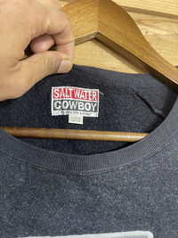 Welcome Please check photo for all detail Please check measurement for size Item: vintage salwater cowboy nevada sweatshirt Condition: used / vintage Size L Color : black Made in japan SHIPPING 1) We ship to worldwide with a tracking number. - All item will ship from malaysia and will be ship by post Malaysia(Flexipack) - All items will be shipped out within 2-3 business days (handling time) after payment received. - Usually,it takes about 10 - 24 business days for delivery for all International order. 2) Add 5.00 USD for speedy delivery via DHL Express Service.It will take 4-7 Working days to deliver. More safe!! (PLEASE LEAVE ME CONTACT NUMBER, AS THE SHIPPING COMPANY ALWAYS NEED THE PHONE NUMBER TO HELP DELIVERING) PAYMENT - We accept payment with Paypal only.