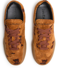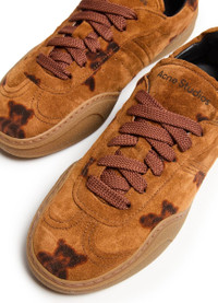 Reveal Acne Studios's lace-up sneakers, crafted from premium suede for a refined look. The round closed toe and low heel ensure comfort, while visible stitching and a thick outer sole add modern flair. A logo on the tongue and logo-printed insole complete these standout sneakers. DESCRIPTION - Sneakers - logo on the tongue - suede - low heel - closed - round toe - thick outer sole - logo-printed insole - laces and strap - visible stitching DETAILS AND CARE MATERIAL: Upper: 100% calf leather, lining: 100% polyester, sole: 100% rubber HEEL HEIGHT: 2 cm / 0.79 " COLOR: rust_brown COUNTRY OF MANUFACTURE: Italy PRODUCT CODE: ACN922CAREDI21A100