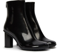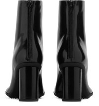 DESCRIPTION - Sleek shape - High-top upper - Back zipper - Pebbled sole - Block heel DETAILS AND CARE MATERIAL: 100% lamb leather HEEL HEIGHT: 7.5 cm / 3 " COLOR: black COUNTRY OF MANUFACTURE: Italy PRODUCT CODE: BOTPZ497BCKI21A100