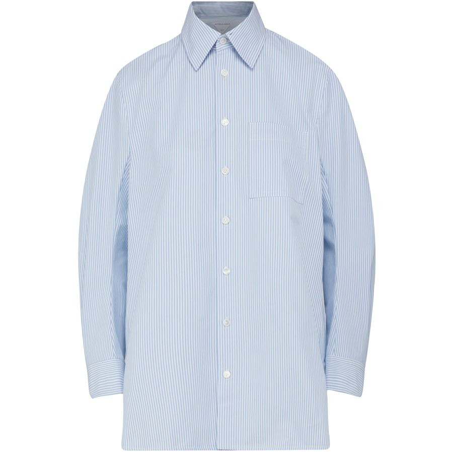 DESCRIPTION - Loose fit - Shorter at the front - Classic collar - Long sleeves - Pleated details DETAILS AND CARE MATERIAL: 100% Cotton COLOR: pale_blue_white COUNTRY OF MANUFACTURE: Italy PRODUCT CODE: BOTXG823BLU5EA1A00