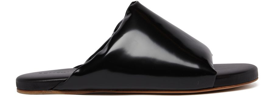 DESCRIPTION - Heeled mules - Flat heel - Pull-on design - Open square toe DETAILS AND CARE MATERIAL: 100% Lamb nappa HEEL HEIGHT: 1 cm / 0.4 " COLOR: black COUNTRY OF MANUFACTURE: Italy PRODUCT CODE: BOT38AY7BCKZZA1100