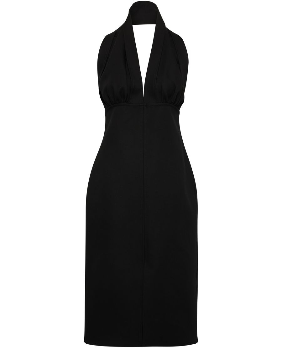 DESCRIPTION - Midi length - Plunging neckline - Sleeveless - Empire waist - Gathered details - Visible stitching DETAILS AND CARE MATERIAL: 100% cotton COLOR: black COUNTRY OF MANUFACTURE: Italy PRODUCT CODE: BOTSVK53BCKAZAAA00