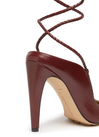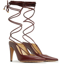 DESCRIPTION - Smooth leather - Pointed toe - Pebbled sole - Stiletto heel - Lacing around the ankle DETAILS AND CARE MATERIAL: 100% Lamb leather HEEL HEIGHT: 12.5 cm / 4.9 " COLOR: cherry COUNTRY OF MANUFACTURE: Italy PRODUCT CODE: BOTEC8T7BURUZA1A00