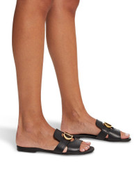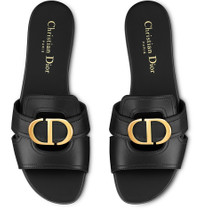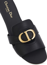 Stemming from the 30 Montaigne collection, the Slide is a key piece for effortless style. The straps are adorned with a gold ‘CD' embellishment, highlighting the beautiful leather work and emblematic quality of the shoe. The black mule is set on a 0.5 cm heel and features an engraved star, one of Mr. Dior's favorite symbols. It is an essential shoe for warmer weather occasions. DESCRIPTION - 30 Montaigne Slide DETAILS AND CARE MATERIAL: main fabric: 80% calf leather / 20% zamak / lining: 100% calf leather HEEL HEIGHT: 0.5 cm / 0.2 " COLOR: noir COUNTRY OF MANUFACTURE: Italy PRODUCT CODE: DIONE642BCKSF39000