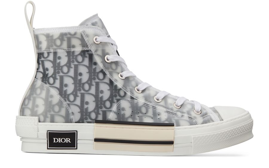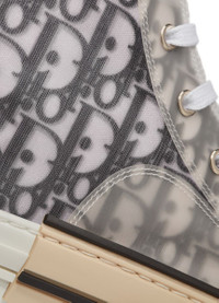 The high B23 sneakers stand out thanks to their superposition of transparent panels and canvas with a Dior Oblique pattern. This model takes up the codes of the timeless high trainer thanks to its set of laces with eyelets at the front, its rubber sole, its rounded and reinforced toe, and its tongue at the back. The whole thing is enhanced by contrasting details on the sides, including a "DIOR" signature. These sneakers will go easily with all your casual outfits. DESCRIPTION - B23 High-Top Sneakers Dior Oblique DETAILS AND CARE MATERIAL: 70% canvas / 30% pvc / sole: 100% goat leather HEEL HEIGHT: 3.5 cm / 1.4 " COLOR: white_black COUNTRY OF MANUFACTURE: Italy PRODUCT CODE: DIOD58YBWHTCE40000 The model is 6ft 0in / 1.84m tall and wears a size EU 44.