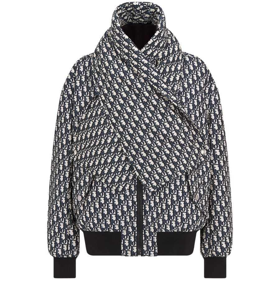 DESCRIPTION - Embroidered bee emblem - Collar with removable scarf - Ribbed collar, cuffs and hem - Lined DETAILS AND CARE MATERIAL: 100% polyester COLOR: 5803_fantaisie COUNTRY OF MANUFACTURE: Italy PRODUCT CODE: DIOSB8D6BLUNA1AA00
