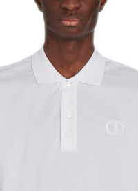 A polo shirt cut in a regular fit with a ribbed collar and cuffs. In 100% cotton piqué, it is finished with a tonal ‘CD Icon’ logo embroidered on the chest. DESCRIPTION - Ribbed polo collar; button closure - Short sleeves with ribbed cuffs - Embroidered 'CD' logo on chest DETAILS AND CARE MATERIAL: 100% cotton COLOR: blanc COUNTRY OF MANUFACTURE: Italy PRODUCT CODE: DIONQ47ZWHTMZZZS00 The model is 6ft 3in / 1.91m tall and wears a size L.