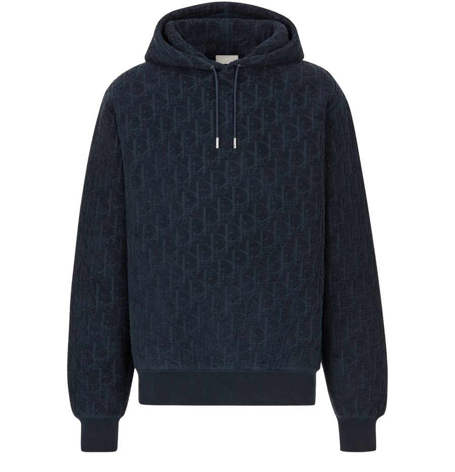 This sweatshirt features the Dior signature. The loose cut of this sweatshirt by the French brand is the perfect finishing touch to a modern and relaxed outfit. DESCRIPTION - Hooded sweatshirt - Ribbed - Adjustable drawstring neck - Long sleeves - Designer's monogram DETAILS AND CARE MATERIAL: 100% cotton COLOR: bleu_marine COUNTRY OF MANUFACTURE: Italy PRODUCT CODE: DIO27J95BLU1T1AA00 The model is 6ft 3in / 1.91m tall and wears a size M.