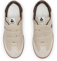 Unveil Isabel Marant's Beth sneakers, crafted from smooth leather and suede for a refined look. These sneakers feature a round toe and a flat heel, ensuring comfort with every step. The contrasting sole and visible stitching add a modern touch, while the Velcro fastening and logo details enhance their stylish appeal. DESCRIPTION - Sneakers - logo at the back - logo on the tongue - smooth leather - suede - flat heel - round toe - contrasting sole - velcro fastening DETAILS AND CARE MATERIAL: Main material: 100% lamb leather, leather 2: 100% cow leather, lining: 100% sheep leather, sole: 100% cow leather HEEL HEIGHT: 1 cm / 0.39 " COLOR: ecru_chocolate COUNTRY OF MANUFACTURE: Portugal PRODUCT CODE: IMAX6H9POWHI21A100