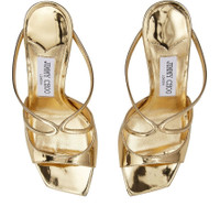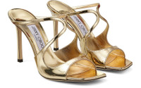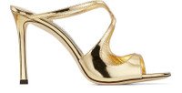 DESCRIPTION - Heeled mules - Logo-printed insole - Very thin sole - Stiletto heel - Open square toe DETAILS AND CARE MATERIAL: 87% Leather / 5% Plastic / 5% Salpa / 3% Metal HEEL HEIGHT: 9.5 cm / 3.74 " COLOR: gold COUNTRY OF MANUFACTURE: Italy PRODUCT CODE: JCHH263EGOLI21A100