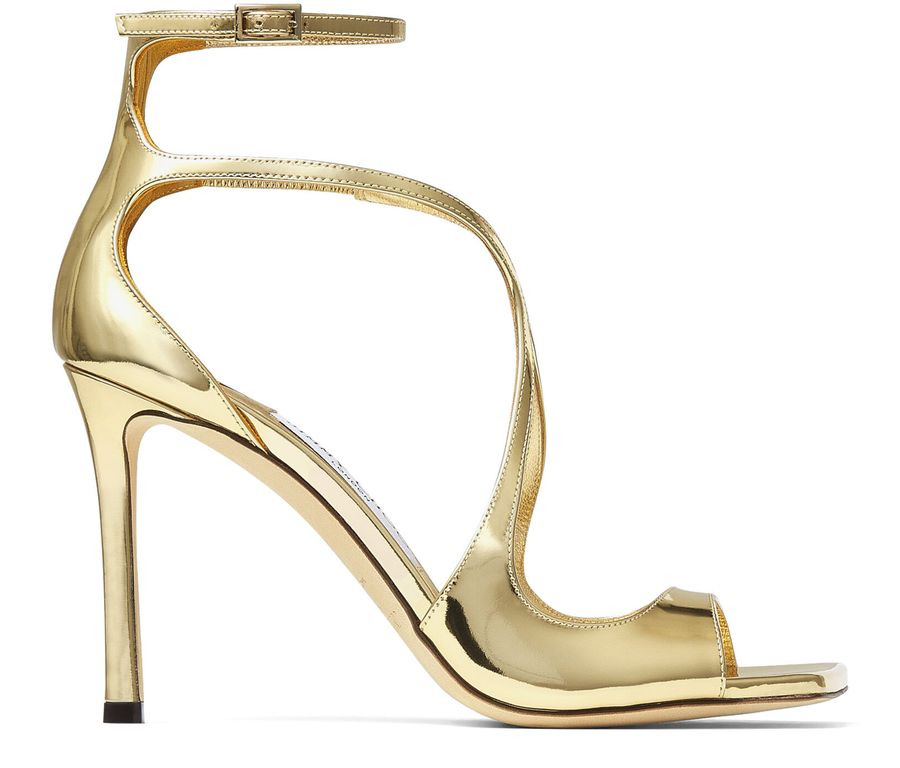 DESCRIPTION - Iridescent material - Graphic cut-outs - Open square toe - Very thin sole - Stiletto heel - Buckled ankle strap DETAILS AND CARE MATERIAL: 85% leather / 5% salpa / 5% plastic / 5% metal HEEL HEIGHT: 9.5 cm / 3.7 " COLOR: gold COUNTRY OF MANUFACTURE: Italy PRODUCT CODE: JCH374A4GOL9821A00