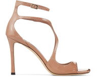 DESCRIPTION - Patent leather - Open square toe - Sleek shape - Buckled ankle strap - Gold metal finishes - Logo-printed insole - stiletto heel DETAILS AND CARE MATERIAL: 85% leather / 5% salpa / 5% plastic / 5% metal HEEL HEIGHT: 9.5 cm / 3.7 " COLOR: ballet_pink COUNTRY OF MANUFACTURE: Italy PRODUCT CODE: JCHN5777PIN68Z1100