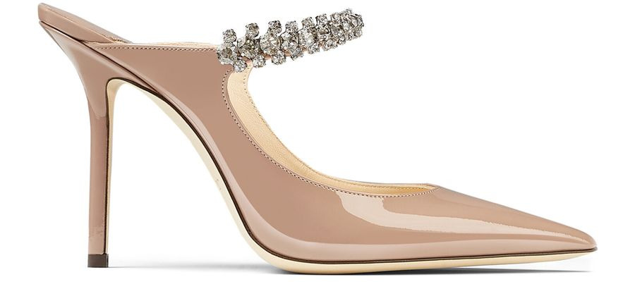 Bing 100 Ballet Pink Patent Leather Mules with Crystal Strap