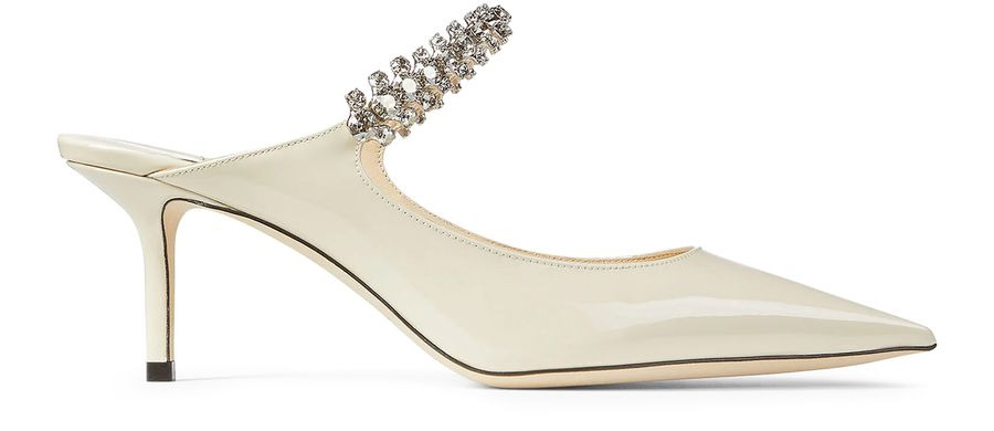 Bing 65 Linen Patent Leather Mules with Crystal Strap
