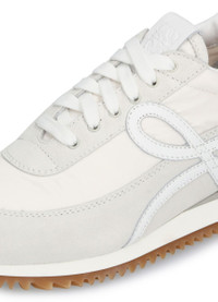 These low-top sneakers have bold, original details that stand out, and the logo subtly embossed on the tongue. Loewe presents a neat creation with a contrasting sole that rises at the heel. DESCRIPTION - Lace-up shoes - Combination of textures - Appliquéd logo - Embossed logo on the tongue - Logo printed on the heel - The fashion house's symbol - Logo insole - Thick, notched sole DETAILS AND CARE MATERIAL: 100% Calf Skin HEEL HEIGHT: 3 cm / 1.2 " COLOR: white COUNTRY OF MANUFACTURE: Italy PRODUCT CODE: LOE5BEBAWHTSI35000 The model is 5ft 9in / 1.74m tall and wears a size EU 40.