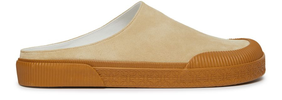 The Loewe Terra Vulca slip-on is a luxurious footwear option that offers a very soft and comfortable feel. It features a signed rubber sole for added durability and traction. The slip-on also boasts a thick outsole, providing stability and support. Perfect for those seeking both style and comfort. DESCRIPTION - Very soft to the touch - Signed rubber sole - Thick outsole DETAILS AND CARE MATERIAL: Suede HEEL HEIGHT: 3 cm / 1.2 " COLOR: gold COUNTRY OF MANUFACTURE: Spain PRODUCT CODE: LOE3N2U8GOL3ZAA100