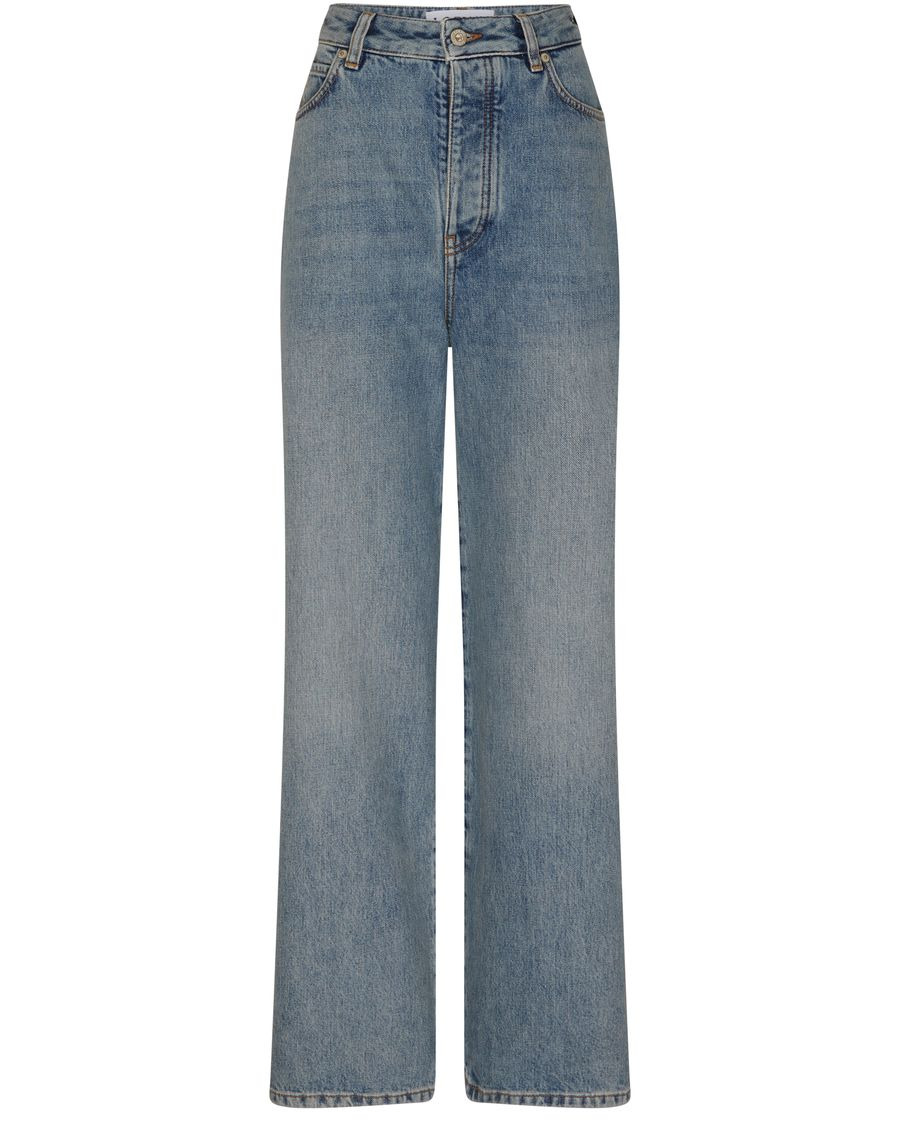 DESCRIPTION - logo at the back - appliquéd logo - buttoned and concealed zipper closure - ankle length - patch detail - five-pocket style - side pockets - back patch pocket - wide cut DETAILS AND CARE COLOR: washed_blue COUNTRY OF MANUFACTURE: Italy PRODUCT CODE: LOEPP637BLUNA1AA00 The model is 5ft 7in / 1.71m tall and wears a size FR 36.