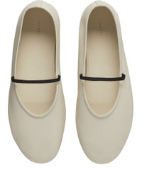 The Row Ballerinas are a classic and elegant shoe option. Made from smooth leather, they feature a round toe and a very thin sole with a flat heel. The logo is printed on the insole and in gold letters on the shoe, adding a touch of luxury to this timeless design. DESCRIPTION - Smooth leather - Round toe - Logo-printed insole - Logo in gold letters - Very thin sole - Flat heel DETAILS AND CARE MATERIAL: Upper : 100% Aries sheep / SOLE : 100% Bull leather HEEL HEIGHT: 0.5 cm / 0.2 " COLOR: milk COUNTRY OF MANUFACTURE: Italy PRODUCT CODE: ROW978AGOWHI21A100