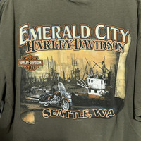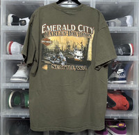 Harley Davidson Emerald City Seattle Motorcycle Biker Tee XL *VINTAGE PRE-OWNED* **SEE PHOTOS FOR APPROXIMATE MEASUREMENTS** *Please refer to pictures for condition* *100% Authentic Money Back Guarantee* **PET/SMOKE FREE ENVIRONMENT** ++Check out our other listings++ **We can make custom bundles upon request** **SAME DAY SHIPPING**