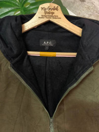 THANK VERY MUCH FOR VISIT OUR PAGE.PLEASE READ CAREFULLY OUR DESCRIPTION AND RARE!! Jacket Hoodies A.P.C Japanese Brand Size on tag: L Jacket still in good Condition 8/10 Actual Measurement : Length arm pit to arm pit : 21.5 Inches Length back collar to hem 28 Inches (Got Defect at Both Arm- Refer Photo) Please look detail at the photo for confirmation. If any question please ask to me. **Please dont expect the pieces in mint condition unless state.Its because vintage or used item may have sign of wear.TQ Important: Telephone number is required for standard shipping detail price nego until letgo. (Ref No:33)