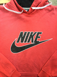 THANK VERY MUCH FOR VISIT OUR PAGE.PLEASE READ CAREFULLY OUR DESCRIPTION AND SATISFIED FIRST Rare Sweater Nike Hoodies Big Logo Size on tag: L Sweater still in good Condition 8/10 Actual Measurement : Length arm pit to arm pit : 22 Inches Length back collar to hem :27.5 Inches Please look detail at the photo for confirmation. If any question please ask to me. **Please dont expect the pieces in mint condition unless state.Its because vintage or used item may have sign of wear.TQ Important: Telephone number is required for standard shipping detail price nego until letgo. (Ref No:4)
