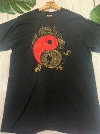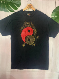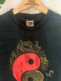 THANK VERY MUCH FOR VISIT OUR PAGE.PLEASE READ CAREFULLY OUR DESCRIPTION AND SATISFIED FIRST RARE!! Shirt Vintage Dragon YING YANG Size on tag: M Shirt still in good Condition 8/10 Actual Measurement : Length arm pit to arm pit : 19.5 Inches Length back collar to hem :30 Inches Please look detail at the photo for confirmation. If any question please ask to me. **Please dont expect the pieces in mint condition unless state.Its because vintage or used item may have sign of wear.TQ Important: Telephone number is required for standard shipping detail price nego until letgo. (Ref No:34)