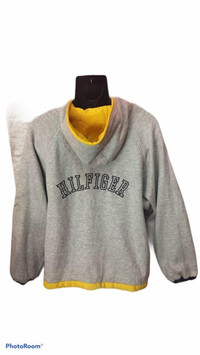 THANK VERY MUCH FOR VISIT OUR PAGE.PLEASE READ CAREFULLY OUR DESCRIPTION AND SATISFIED OUR ITEM BEFORE MAKE PAYMENT .IF OVER PRICE Rare Revearsible Jacket Sweater Tommy Hilfiger Size on tag M Colour : yellow Sweater still in good Condition 9/10 Actual Measurement : Length arm pit to arm pit : 23 Inches Length back collar to hem : 26.5 Inches Please look detail at the photo for confirmation. If any question please ask to me. **Please dont expect the pieces in mint condition unless state.Its because vintage or used item may have sign of wear.TQ Important: Telephone number is required for standard shipping detail price nego until letgo.TQSM