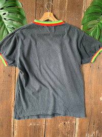 THANK VERY MUCH FOR VISIT OUR PAGE.PLEASE READ CAREFULLY OUR DESCRIPTION AND SATISFIED FIRST RARE!! Shirts RASTA Ringer Size on tag: M Shirt still in good Condition 8/10 Actual Measurement : Length arm pit to arm pit : 19.5 Inches Length back collar to hem :26.5 Inches Please look detail at the photo for confirmation. If any question please ask to me. **Please dont expect the pieces in mint condition unless state.Its because vintage or used item may have sign of wear.TQ Important: Telephone number is required for standard shipping detail price nego until letgo. (Ref No:36)