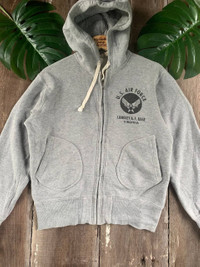 THANK VERY MUCH FOR VISIT OUR PAGE.PLEASE READ CAREFULLY OUR DESCRIPTION AND SATISFIED FIRST RARE!! Sweater Hoodies U.S AIR FORCE Size on tag: S Jacket still in good Condition 8/10 Actual Measurement : Length arm pit to arm pit : 20 Inches Length back collar to hem :23 Inches Please look detail at the photo for confirmation. If any question please ask to me. **Please dont expect the pieces in mint condition unless state.Its because vintage or used item may have sign of wear.TQ Important: Telephone number is required for standard shipping detail price nego until letgo. (Ref No:43)