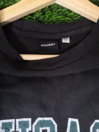 THANK VERY MUCH FOR VISIT OUR PAGE.PLEASE READ CAREFULLY OUR DESCRIPTION AND SATISFIED FIRST RARE SWEATER MOUSSY CHICAGO NIVE DESIGN Size on tag :M Shirt still in good Condition 8.5/10 Actual Measurement : Length arm pit to arm pit : 19.5 Inches Length back collar to hem : 27 Inches Please look detail at the photo for confirmation. If any question please ask to me. Dont worry about customs tax or fee..Usually i declare item as a gift & declare value of item below than original price. **Please dont expect the pieces in mint condition unless state.Its because vintage or used item may have sign of wear.TQ Important: Telephone number is required for standard shipping detail price nego until letgo.