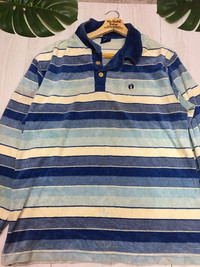 THANK VERY MUCH FOR VISIT OUR PAGE.PLEASE READ CAREFULLY OUR DESCRIPTION T-Shirt Polo HANG TEN Stripe Size on tag: L Shirt still in good Condition 8/10 Actual Measurement : Length arm pit to arm pit : 21 Inches Length back collar to hem 28 Inches Please look detail at the photo for confirmation. If any question please ask to me. **Please dont expect the pieces in mint condition unless state.Its because vintage or used item may have sign of wear.TQ Important: Telephone number is required for standard shipping detail price nego until letgo. (Ref No:27)
